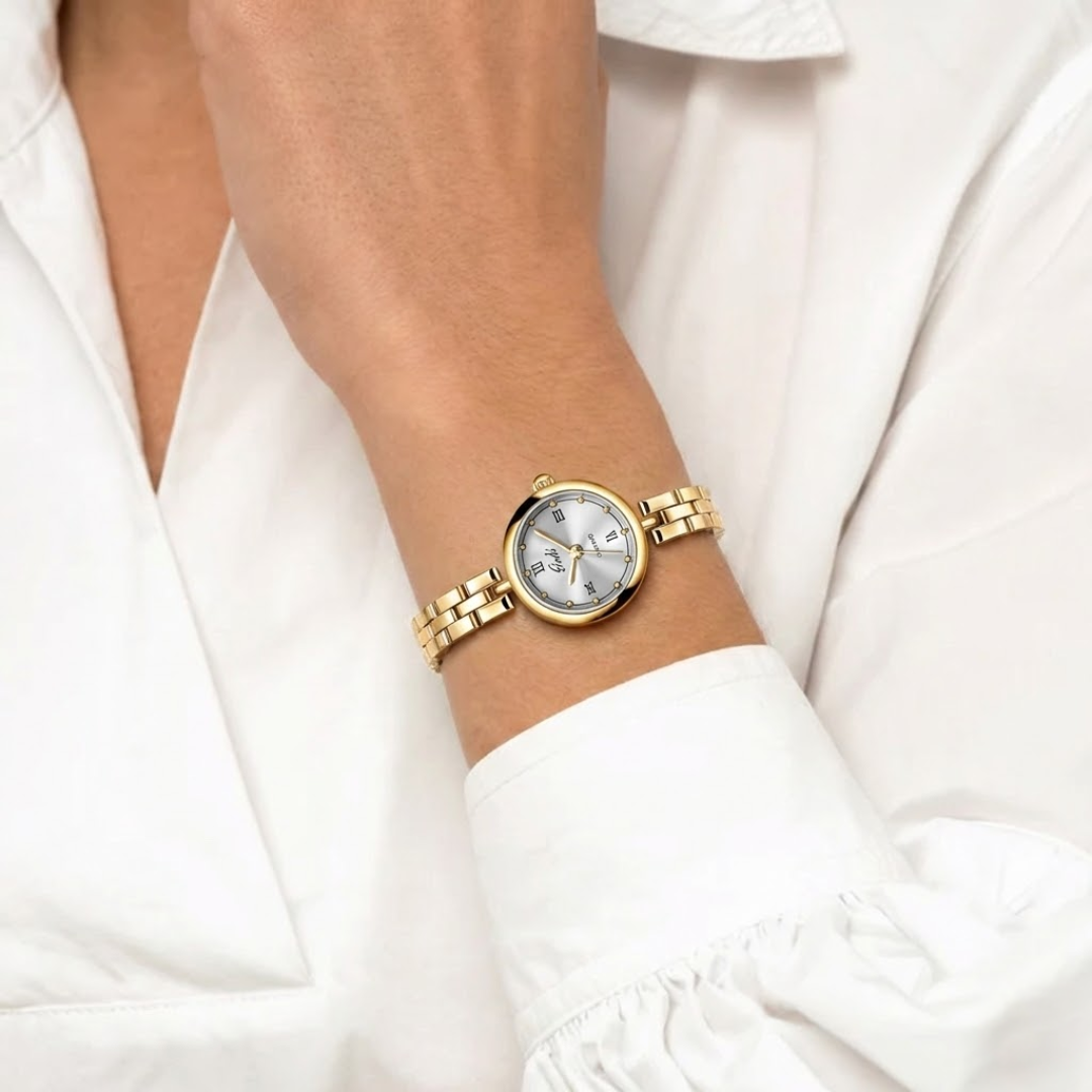 Classic femininity in gold. Roman numeral dial with delicate link bracelet.