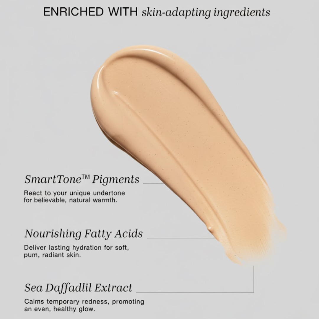 Works with your skin using SmartTone™ Technology—adaptive micro-pigments that respond to your unique undertone, pH, and body warmth the way real skin reacts to sunlight. The result: that believable, dimensional, sun-kissed glow that makes you look like you just stepped off a beach—every single day, no sun or tanning required.